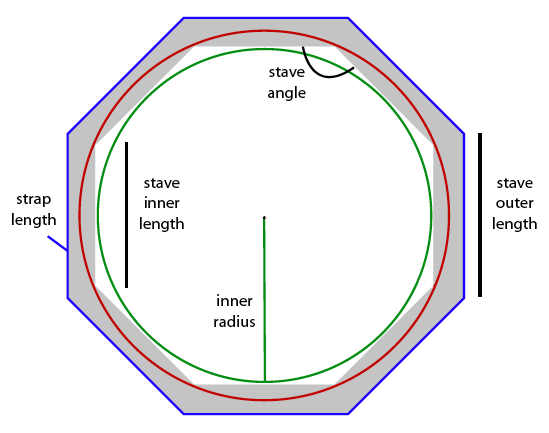 Cross section of a polygonal hive with 8 staves: